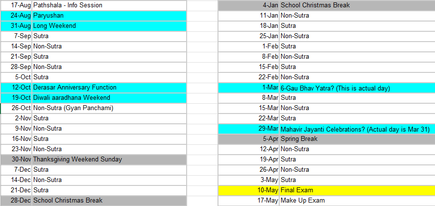 Pathshala will be held every Sunday from 11:00 AM to 12:00 PM.